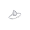 Design: Pear-shaped centre diamond with halo and diamond-set band