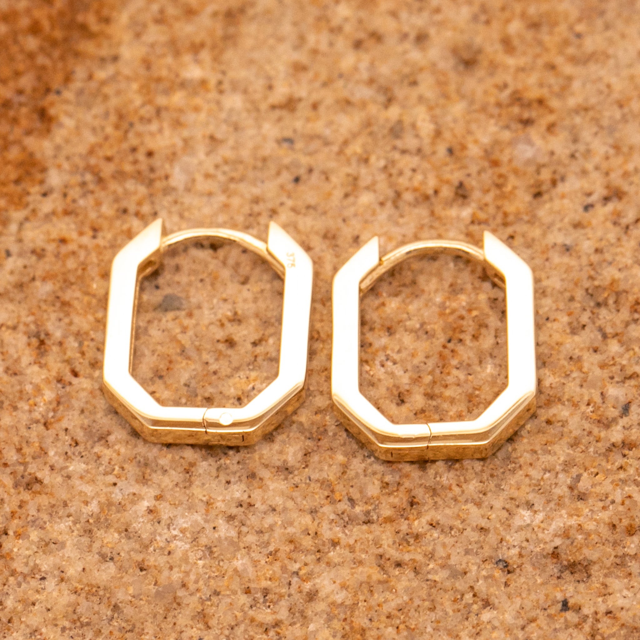 9ct Yellow Gold Hexagonal Shaped Hoop Earrings