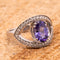 A captivating statement of luxury and symbolism, this 18ct white gold ring showcases a mesmerising oval tanzanite, uniquely shaped and measuring 9.8mm x 6.7mm, with a weight of 2.24 carats. The striking violet-blue gem sits at the centre of an elegant eye-shaped design, inspired by the protective evil eye motif—a symbol of intuition and warding off negative energy.