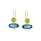 Crafted with 9ct yellow gold, these stunning earrings showcase a round peridot and an oval London blue topaz, each securely held in a 4 claw setting. Their elegant shepherd hooks add a touch of sophistication and comfort to any outfit.