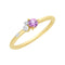 Experience the stunning combination of peridot and pink sapphire with our 9ct yellow gold dress ring. The pear shaped peridot stone is elegantly secured in a 3 claw setting, while the round pink sapphire sits in a 4 claw setting. The wave-like detail on the band adds a unique touch to this timeless piece.