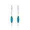 14kt two tone gold earrings with a hanging elongated oval opal center and diamonds.