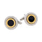 Rhodium & Gold Plated Black Enamel Round Cufflinks