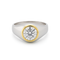 The harmonious contrast of white and yellow gold enhances the design, offering a modern twist on a classic signet style while ensuring timeless sophistication. Whether worn as a signature piece or treasured heirloom, this ring embodies understated luxury.