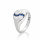 Expertly crafted with sterling silver, the Bays Collection Blue Sapphire Signet Ring boasts a unique wave design with 7 natural sapphires and a half-hammered finish. The perfect combination of elegance and style, this ring is a timeless addition to any jewellery collection.